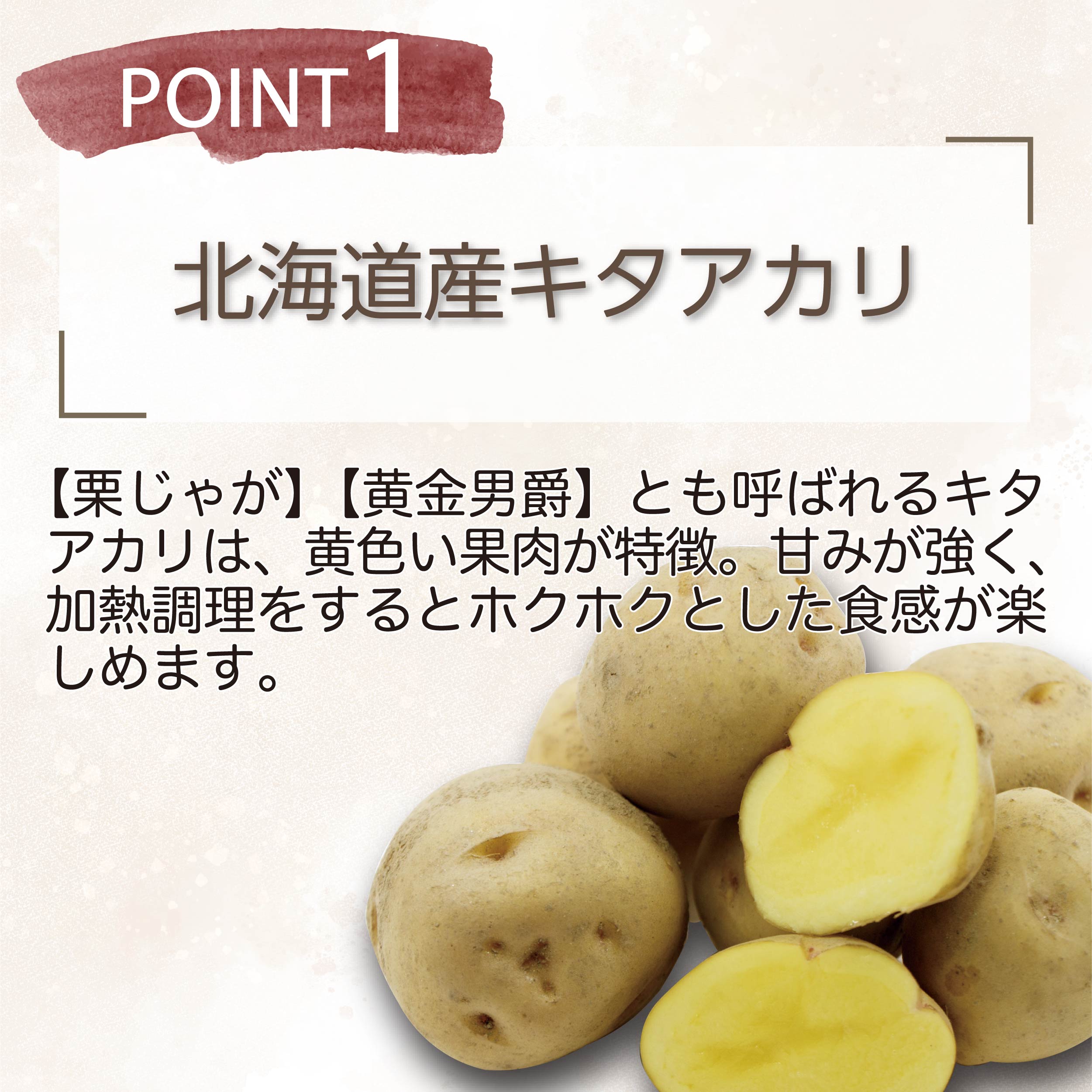 ほくほくとした食感で甘みのある北海道産「キタアカリ」を使用。