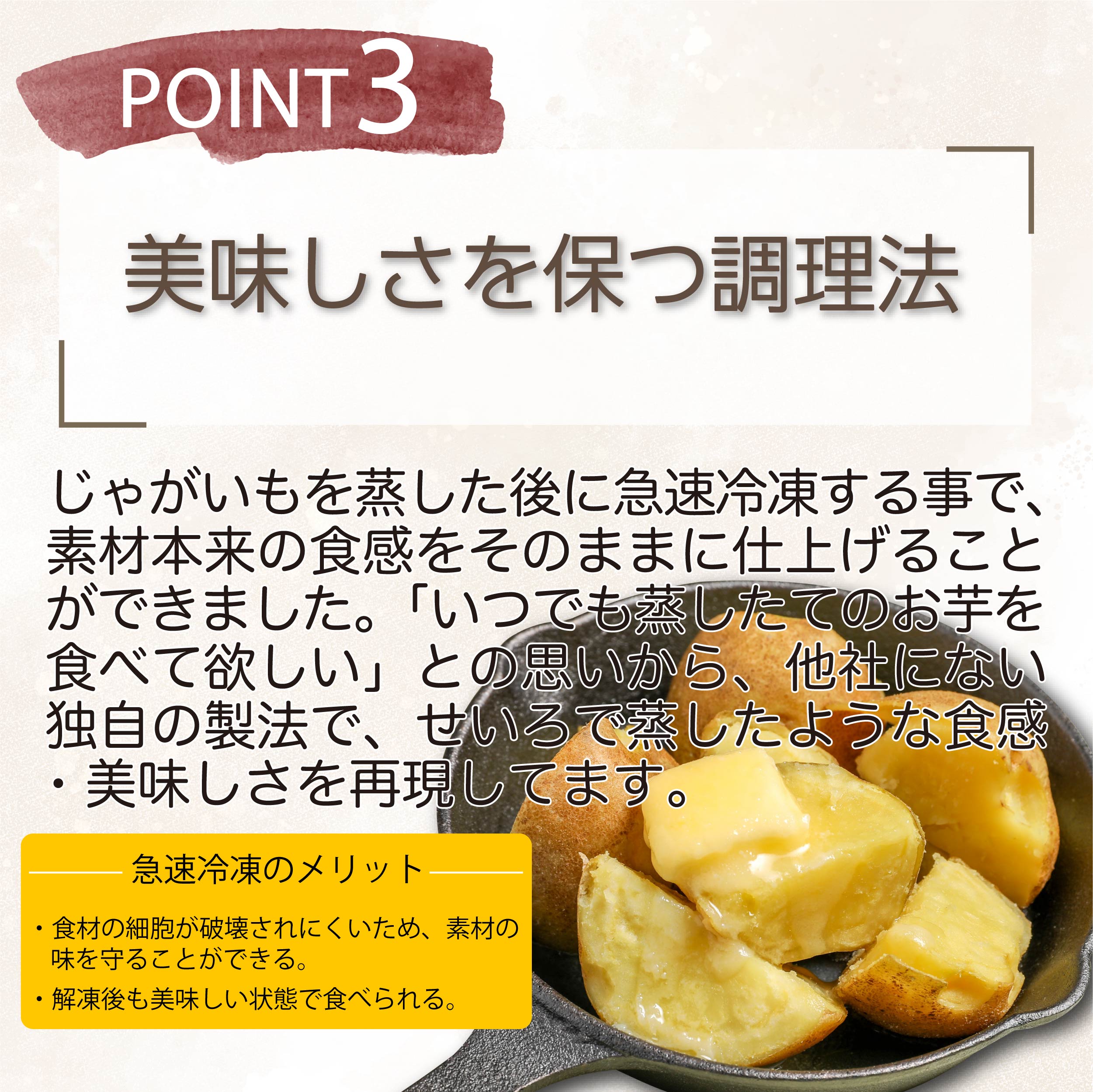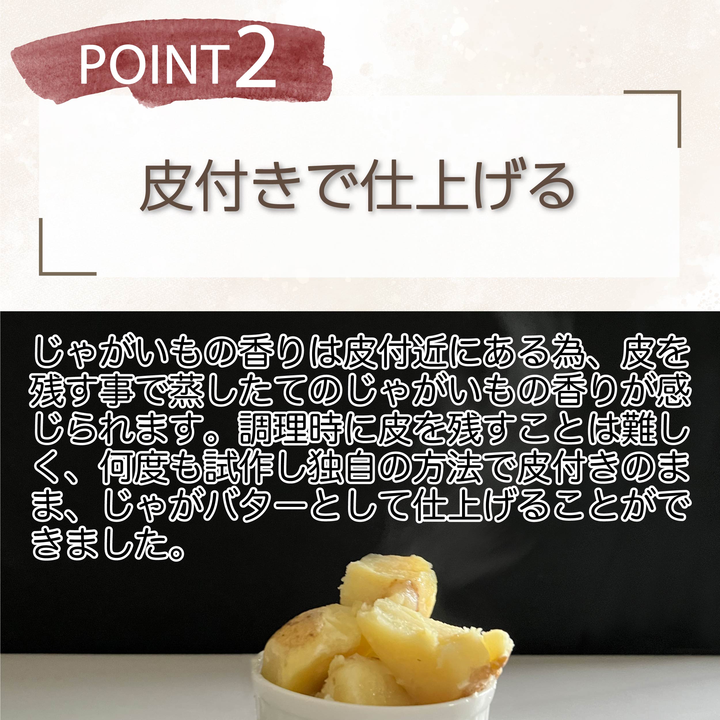 クセになるバター風味と塩加減で、じゃがいも本来の風味を味わえるよう仕上げました。