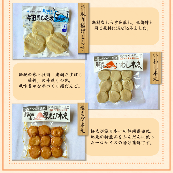 | 製造者 | さすぼし蒲鉾株式会社(静岡県静岡市清水区 由比町屋原176-7) |