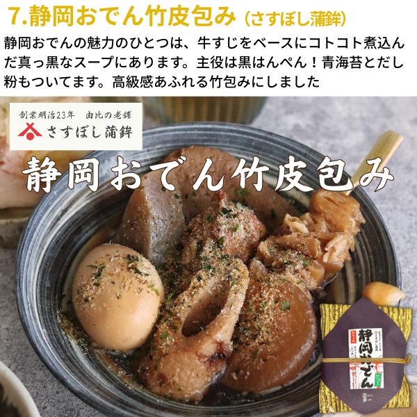 | 製造者 | 有限会社 友和丸(静岡県静岡市清水区蒲原5183番地) 株式会社ヤマイチ商店(静岡県静岡市清水区蒲原新田二丁目2-25) 合資会社高福(静岡県静岡市清水区蒲原堰沢389-1) さすぼし蒲鉾株式会社(静岡県静岡市清水区 由比町屋原176-7) 潮宝食品株式会社(静岡県静岡市葵区流通センター5-6) |