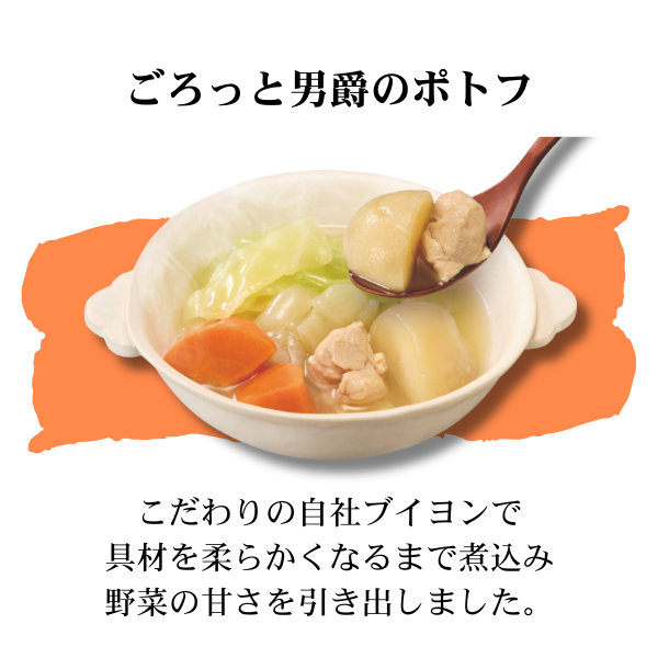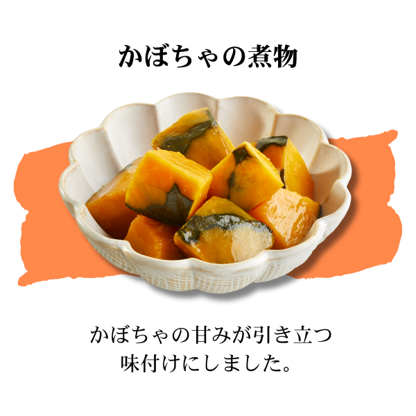 | 内容量 | ほっくりさつま芋炊き100g×2 栗いむのさつま芋スイーツサラダ70g×2 ファミリータイプ/かぼちゃの煮物155g×2 北海道男爵のポテトサラダ110g×2 かぼちゃサラダ70g×2 ごろっと男爵のポトフ180g×2 黒毛牛(アンガス種)の肉じゃが165g×2 計14個 |