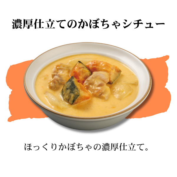| 原材料名 | ●北海道男爵のクリームシチュー:ホワイトソース〔牛乳(北海道製造)、チキンブイヨン、ルウ(小麦粉、発酵バター)、その他〕、じゃがいも(北海道産)、鶏肉、にんじん、たまねぎ、マッシュルーム、植物油、清酒、砂糖、食塩、本みりん、こしょう ●濃厚仕立てのかぼちゃシチュー:ホワイトソース〔牛乳(北海道製造)、チキンブイヨン、かぼちゃ、ルウ(小麦粉、発酵バター)、その他〕、かぼちゃ、鶏肉、たまねぎ、植物油、清酒、食塩、砂糖、こしょう |