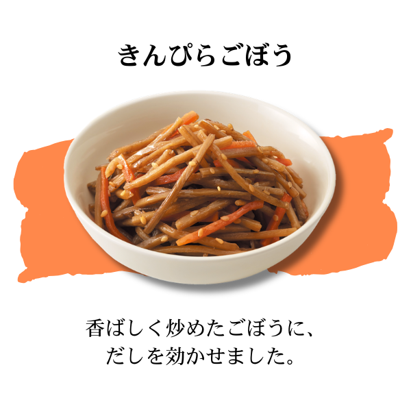 | 原材料名 | ●かまど炊き風 黒豆:黒大豆(北海道産)、砂糖、食塩、しょうゆ(小麦を含む)/硫酸第一鉄 ●かまど炊き風 金時豆:金時豆(国産)、砂糖、食塩、水あめ、しょうゆ(小麦・大豆を含む) ●かまど炊き風 ごもく豆:大豆(北海道産)、砂糖、ごぼう、にんじん、だし、しょうゆ(小麦を含む)、こんにゃく、れんこん、しいたけ、こんぶ、発酵調味料、たん白加水分解物、かつおエキス/水酸化Ca ●かまど炊き風 黒豆:黒大豆(北海道産)、砂糖、食塩、しょうゆ(小麦を含む)/硫酸第一鉄 ●ひじき煮:ひじき(韓国産)、大豆煮(大豆、砂糖、食塩)、だし(さばを含む)、にんじん、油揚げ、たけのこ水煮、れんこん、しょうゆ(小麦を含む)、砂糖、本みりん、植物油 ●たけのこ土佐煮:たけのこ水煮(中国製造)、本みりん、しょうゆ(小麦・大豆を含む)、だし(さばを含む)、清酒、砂糖、かつおぶし、食塩 ●北海道男爵のポテトサラダ:じゃがいも(北海道産)、マヨネーズ(卵・大豆を含む)、にんじん、たまねぎ、だし、醸造酢、砂糖、食塩、こしょう ●ツナ&コーンマカロニサラダ:マカロニ(小麦を含む、アメリカ製造)、マヨネーズ(卵を含む)、たまねぎ、にんじん、ツナ〔まぐろ油漬(大豆を含む)、かつお油漬〕、コーン、分離液状ドレッシング(りんごを含む)、砂糖、チキンブイヨン、マスタード、食塩、だし、植物油、醸造酢、こしょう、鰹節抽出液/調味料(アミノ酸等) ●ごぼうサラダ:ごぼう(中国産)、マヨネーズ(卵・大豆を含む)、にんじん、半固体状ドレッシング(りんごを含む)、しょうゆ(小麦を含む)、ごま、砂糖、分離液状ドレッシング、醸造酢、食塩、卵白加工品、みそ/調味料(アミノ酸等)、香辛料抽出物、増粘剤(タマリンドシードガム)、酒精 ●かぼちゃサラダ:かぼちゃ(国産又はメキシコ産又はその他)、マヨネーズ(卵・大豆を含む)、砂糖、醸造酢(りんごを含む)、食塩、食物繊維(オレンジを含む)、こしょう ●きんぴらごぼう:ごぼう(中国産)、にんじん、しょうゆ(小麦・大豆を含む)、本みりん、だし(さばを含む)、植物油、砂糖、ごま、清酒、食塩、でん粉、唐辛子 ●北海道男爵の煮っころがし:じゃがいも(北海道産)、だし、砂糖、しょうゆ(小麦・大豆を含む)、植物油、本みりん、でん粉、清酒、食塩 ●かぼちゃのそぼろあんかけ:かぼちゃ(メキシコ産又は国産又はその他)、だし(さばを含む)、鶏肉、しょうゆ(小麦・大豆を含む)、本みりん、砂糖、でん粉、食塩、清酒 ●すき焼き風牛ごぼう煮:ごぼう(中国産)、たまねぎ、牛肉、しらたき、しょうゆ(小麦・大豆を含む)、だし、砂糖、本みりん、清酒、牛脂、おろししょうが、唐辛子/水酸化Ca ●だしが自慢の筑前煮:にんじん(中国産)、こんにゃく、だし、ごぼう、鶏肉、たけのこ水煮、しいたけ、しょうゆ(小麦・大豆を含む)、砂糖、本みりん、清酒、植物油/糊料(加工デンプン)、水酸化Ca ●黒毛牛(アンガス種)の肉じゃが:じゃがいも(北海道産)、たまねぎ、牛肉(アンガス種)、しらたき、しょうゆ(小麦・大豆を含む)、砂糖、にんじん、本みりん、だし、清酒、植物油/水酸化Ca |