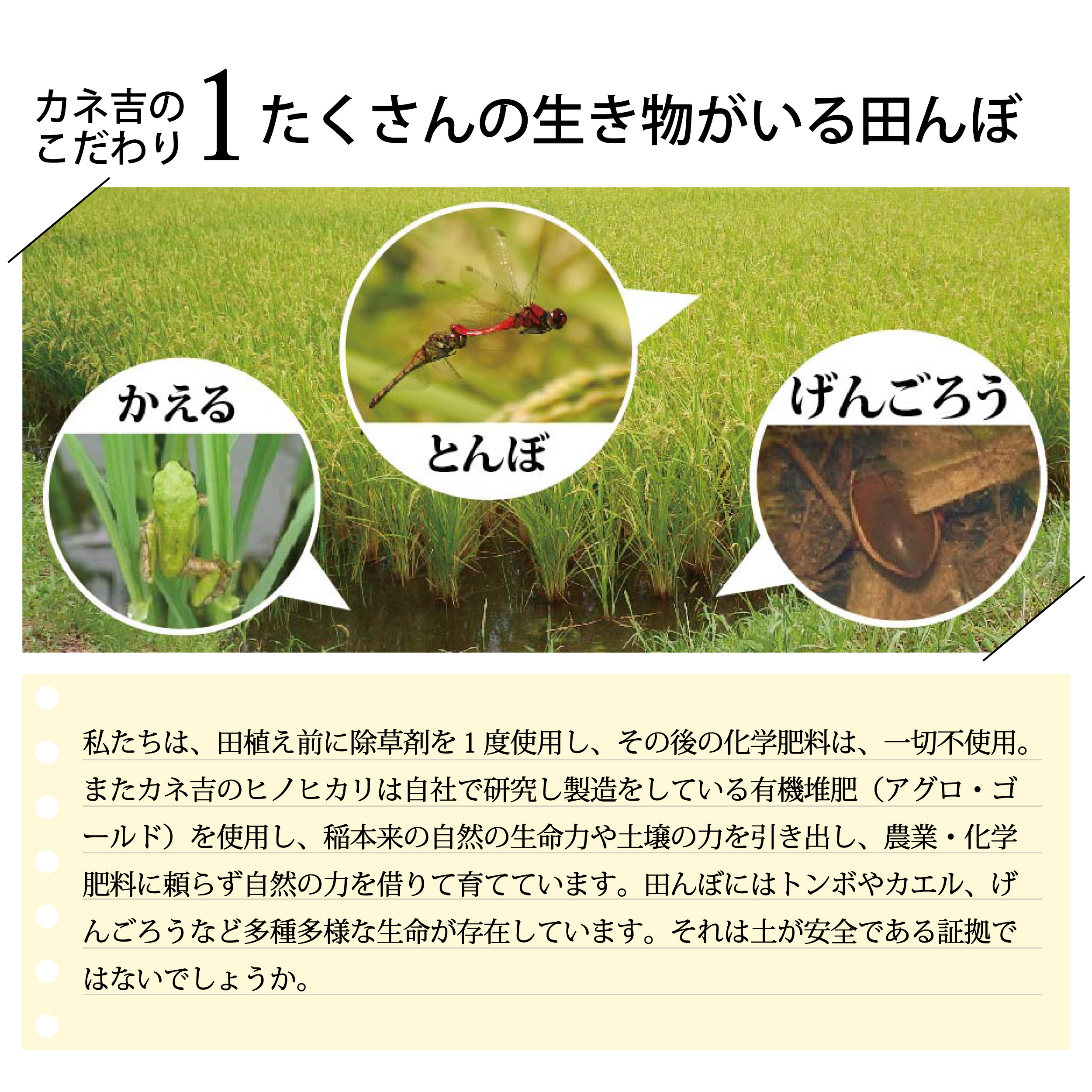| 賞味期限 | ●カネ吉のヒノヒカリ(精米日):別途ラベルに記載 ●他:製造日から30日~40日 |