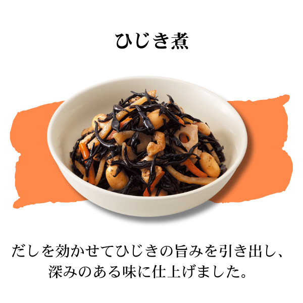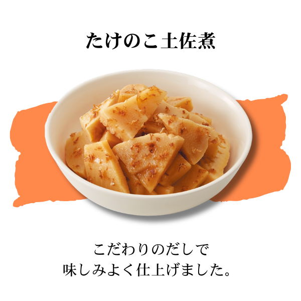 | 原材料名 | ●カネ吉のヒノヒカリ:宮崎県産 ●ひじき煮:ひじき(韓国産)、大豆煮(大豆、砂糖、食塩)、だし(さばを含む)、にんじん、油揚げ、たけのこ水煮、れんこん、しょうゆ(小麦を含む)、砂糖、本みりん、植物油 ●きんぴらごぼう:ごぼう(中国産)、にんじん、しょうゆ(小麦・大豆を含む)、本みりん、だし(さばを含む)、植物油、砂糖、ごま、清酒、食塩、でん粉、唐辛子 ●たけのこ土佐煮:たけのこ水煮(中国製造)、本みりん、しょうゆ(小麦・大豆を含む)、だし(さばを含む)、清酒、砂糖、かつおぶし、食塩 ●北海道男爵のポテトサラダ:じゃがいも(北海道産)、マヨネーズ(卵・大豆を含む)、にんじん、たまねぎ、だし、醸造酢、砂糖、食塩、こしょう ●すき焼き風牛ごぼう煮:ごぼう(中国産)、たまねぎ、牛肉、しらたき、しょうゆ(小麦・大豆を含む)、だし、砂糖、本みりん、清酒、牛脂、おろししょうが、唐辛子/水酸化Ca ●黒毛牛(アンガス種)の肉じゃが:じゃがいも(北海道産)、たまねぎ、牛肉(アンガス種)、しらたき、しょうゆ(小麦・大豆を含む)、砂糖、にんじん、本みりん、だし、清酒、植物油/水酸化Ca ●だしが自慢の筑前煮:にんじん(中国産)、こんにゃく、だし、ごぼう、鶏肉、たけのこ水煮、しいたけ、しょうゆ(小麦・大豆を含む)、砂糖、本みりん、清酒、植物油/糊料(加工デンプン)、水酸化Ca |